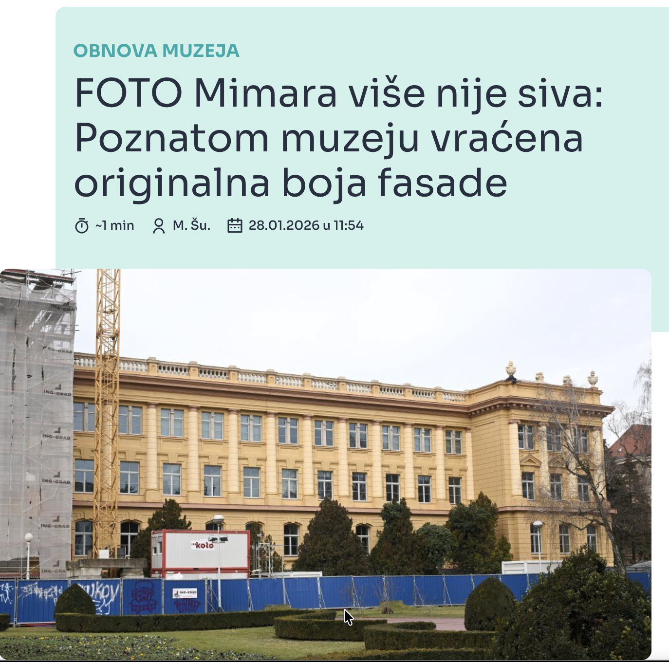 Obnova zgrade muzeja Mimara jedna je od najkompleksnijih u Zagrebu, sada ulazi u svoju posljednju fazu. Dok radovi u interijeru još traju, otkrivena je istočna strana pročelja koje više nije siva, već zlatna.